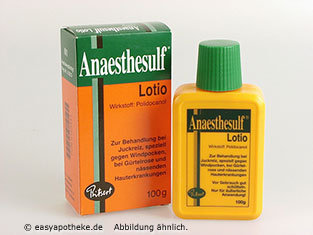Die Anaesthesulf Lotio wird zur äußerlichen Behandlung von Gürtelrose, Juckreiz und anderen Infektionen der Haut angewendet. Die Lotion enthält unter anderem den Wirkstoff Polidocanol. Da der Wirkstoff über örtlich betäubende Eigenschaften verfügt, ist er in der Lage Juckreiz und Schmerzen bei Hautinfektionen zu lindern. Die Lotion sorgt gleichzeitig für eine angenehme Kühlung der Haut. Mit der Anaesthesulf Lotio können auch Schmerzen und Entzündungen an Zahnfleisch, Lippen und Mundschleimhaut behandelt werden.