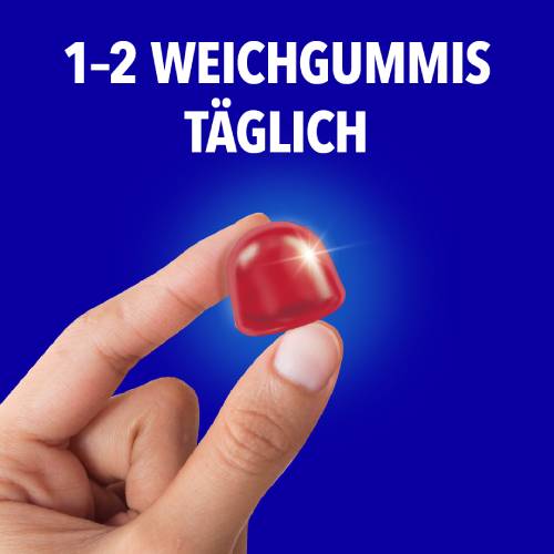 Erwachsene (ab 18 Jahren): 1-2 Weichgummis täglich. Kein Wasser erforderlich. Die empfohlene tägliche Verzehrsmenge nicht überschreiten. Nahrungsergänzungsmittel sind kein Ersatz für eine ausgewogene, abwechslungsreiche Ernährung und einen gesunden Lebensstil.