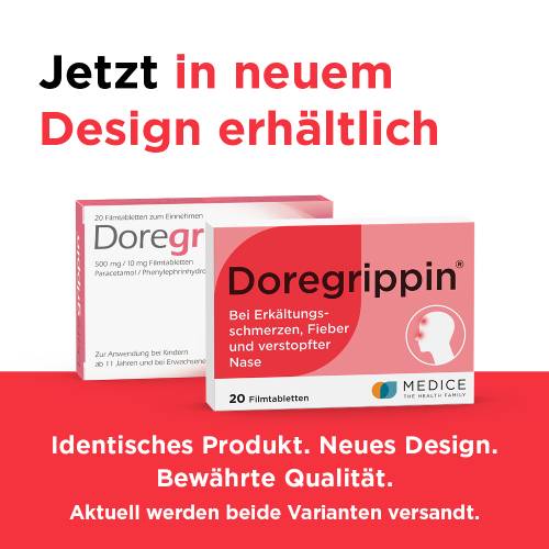Doregrippin® - Die schnelle 3-fach-Hilfe bei Erkältungsschmerzen, Fieber und verstopfter Nase