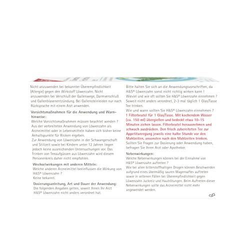 | Jugendliche ab 12 Jahren und Erwachsene | 1 Teebeutel | 2-3 mal täglich | nach der Mahlzeit |
