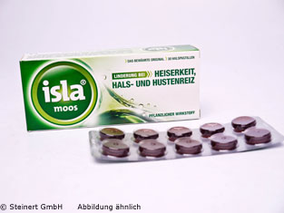 Isla Moos Pastillen werden angewandt zur Behandlung bei Beschwerden im Hals-und Rachenraum wie z.B. Hustenreiz und Heiserkeit sowie bei starker Beanspruchung der Stimmbänder( Sänger, Redner).Die Pastillen enthalten einen wässrigen Auszug aus isländisch Moos. Dieser Wirkstoff legt sich wie ein Schutzfilm über die angegriffenen Schleimhäute und sie werden so vor weiteren Angriffen von außen geschützt. Die Schleimhaut kann sich regenerieren. Die Isla Moos Pastillen schmecken angenehm mild, sie sind gluten- und konservierungsfrei.