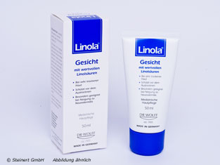 Die Linola Gesichtscreme wird zur Unterstützung der Regeneration der Haut angewendet. Die Creme enthält unter anderem Sonnenblumen- und Canola-Lipide, mit einem hohen Gehalt an Linolsäure. Die Linolsäure ist wichtig für eine intakte Hornschicht, welche die Haut vor Wasserverlusten und Austrocknung schützt. Der Körper ist nicht in der Lage diesen Pflegestoff selbst herzustellen, ist also auf eine Zuführung von außen angewiesen. Die Linola Gesichtscreme kann auch eine trockene, gereizte und juckende Haut beruhigen.