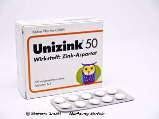 Die Unizink 50 Tabletten werden zur Behandlung und Vorbeugung eines Zinkmangels angewendet. Die Tabletten enthalten eine Kombination aus Zink und der koerpereigenen Aminosaeure Asaraginsaeure. Diese Kombination kann vom Koerper besonders gut aufgenommen und verwertet werden. Beim Zink handelt es sich um einen wichtigen Mineralstoff fuer den Stoffwechsel von Haut, Haaren und Naegeln. Der Wirkstoff unterstuetzt sowohl das Wachstum, als auch die Zellerneuerung. Durch die Unizink 50 Tabletten werden zusaetzlich die Abwehrkraefte im Koerper aktiviert, wodurch Viren, Bakterien und freie Radikale unschaedlich gemacht werden.