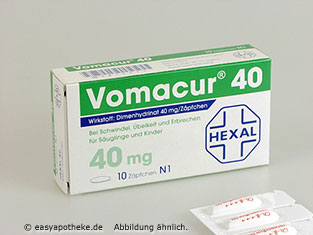Die Vomacur 40 Zäpfchen werden zur Vorbeugung und Behandlung von Übelkeit und Erbrechens unterschiedlichen Ursprungs angewendet. Die Zäpfchen enthalten den Wirkstoff Dimenhydrinat. Das Dimenhydrinat beeinflusst direkt das Brechzentrum im Gehirn, ohne auf die wichtigen benachbarten Zentren zu wirken. Es kommt zu einer Beruhigung der Magen- und Darmbewegungen. Zu Übelkeit und Erbrechen kann es aufgrund vieler verschiedener Ursachen kommen. Die Vomacur 40 Zäpfchen wirken schnell und zuverlässig über einen längeren Zeitraum und sind im Allgemeinen gut verträglich.